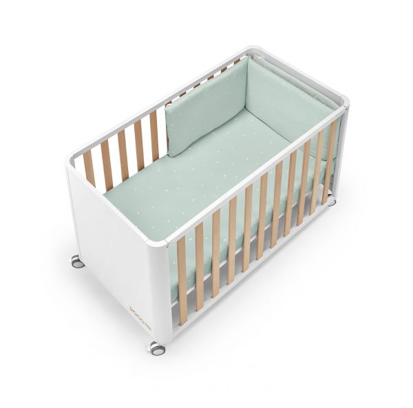 Cotinfant Doco Sleeping Wood 120×60 Natural&Blanco con Textil – Sena Verde Menta