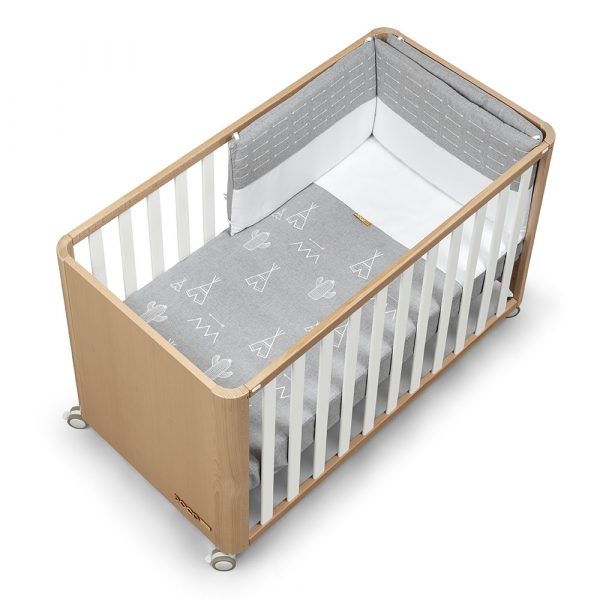 Cotinfant Doco Sleeping Wood – Minicuna de colecho 90X50 con textil Tipi Gris