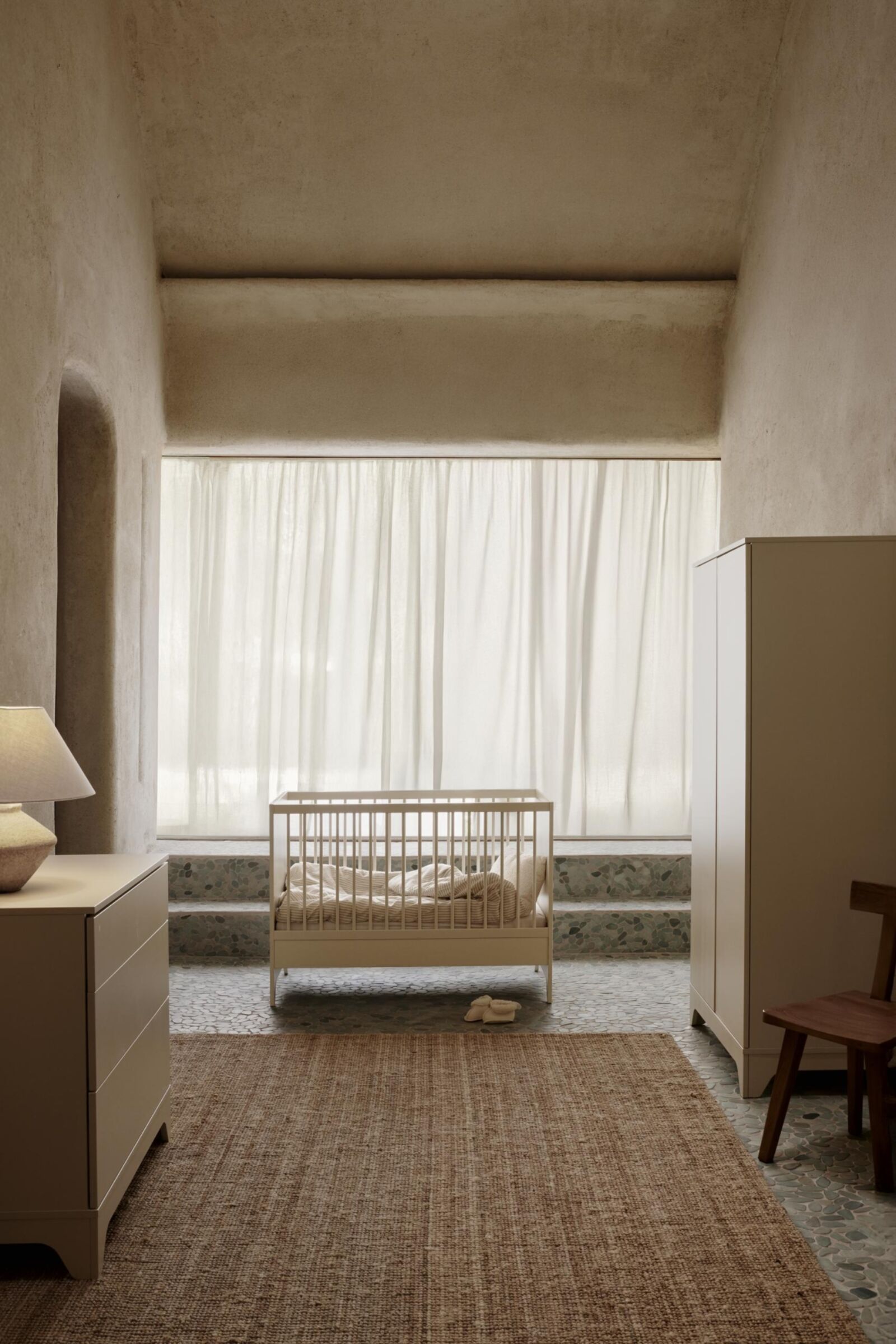 La cama convertible Tsugi de Quax 120 x 60 cm es una opción perfecta para familias que buscan una cuna moderna, espaciosa y adaptable a las diferentes etapas de crecimiento. Con un diseño de líneas redondeadas y un acabado monocromático suave en tono Butter, aporta calma, luz y elegancia atemporal a cualquier habitación infantil.