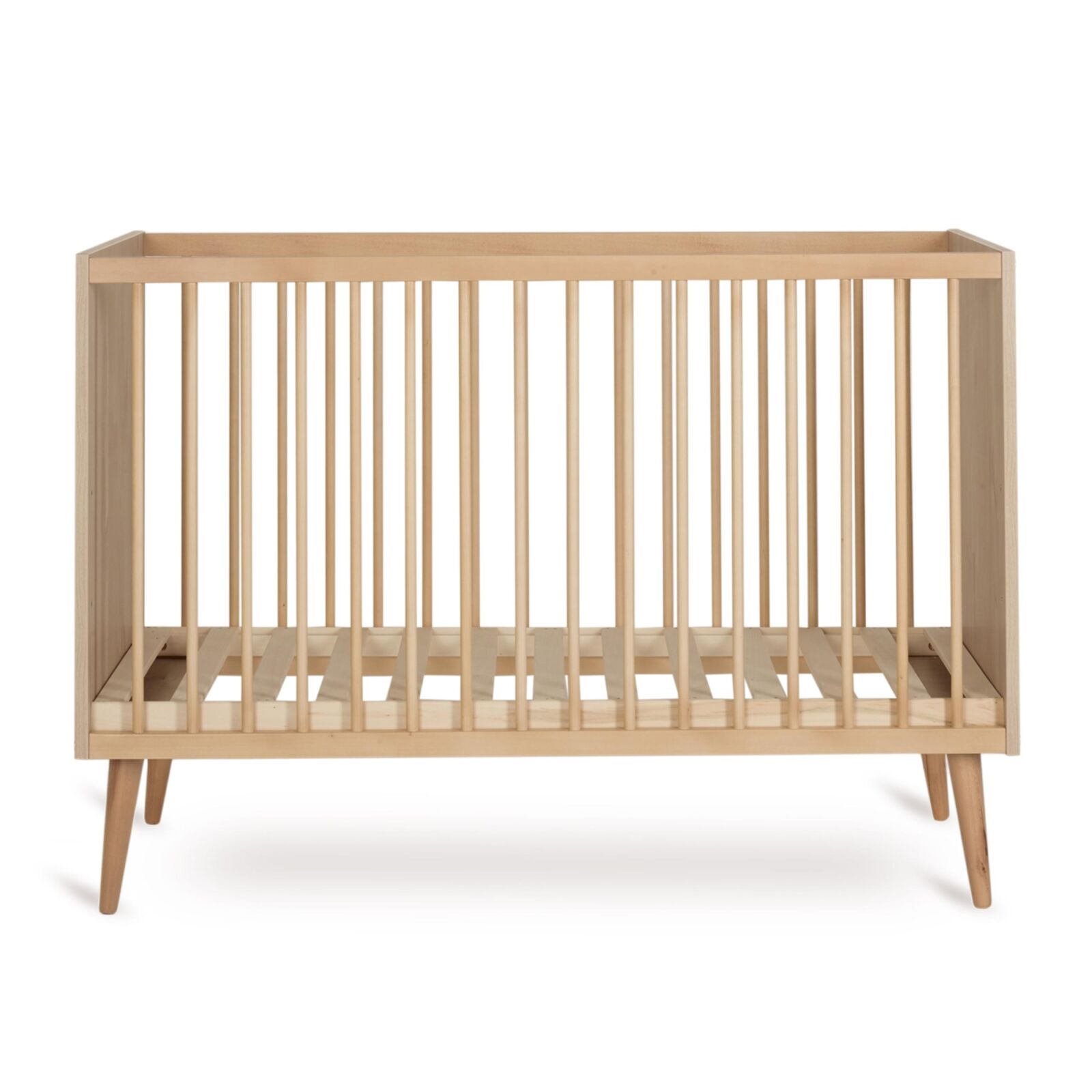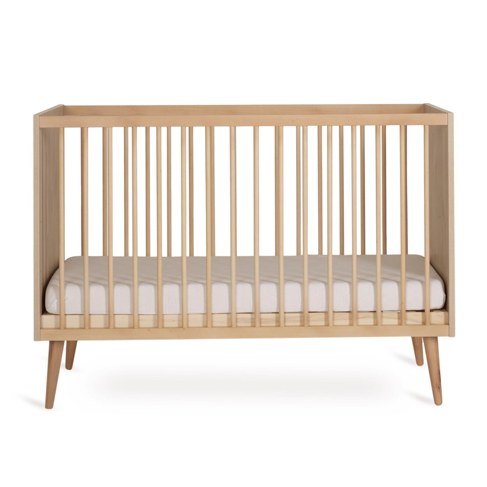 La cama Quax Cocoon 120×60 combina minimalismo, elegancia natural y funcionalidad para el descanso del bebé. Incluye base ajustable en tres alturas, patas de madera maciza de haya y materiales seguros certificados. Cumple con la normativa europea EN 716, ofreciendo un espacio cómodo, moderno y seguro desde el nacimiento.