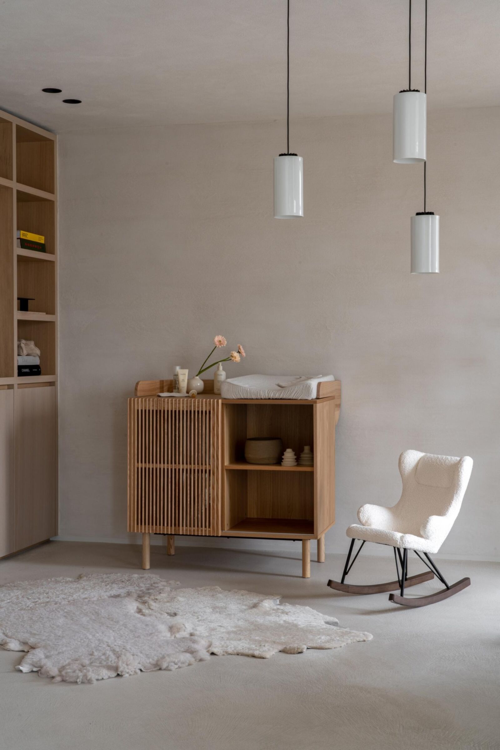 Esta extensión permite transformar fácilmente la cómoda Hai No Ki o Yume en un cambiador XL, manteniendo la coherencia estética de la habitación y aportando una funcionalidad extra sin renunciar al diseño. Sus generosas dimensiones interiores ofrecen un espacio cómodo y seguro para cambiar al bebé, convirtiéndola en una opción ideal para el uso diario.