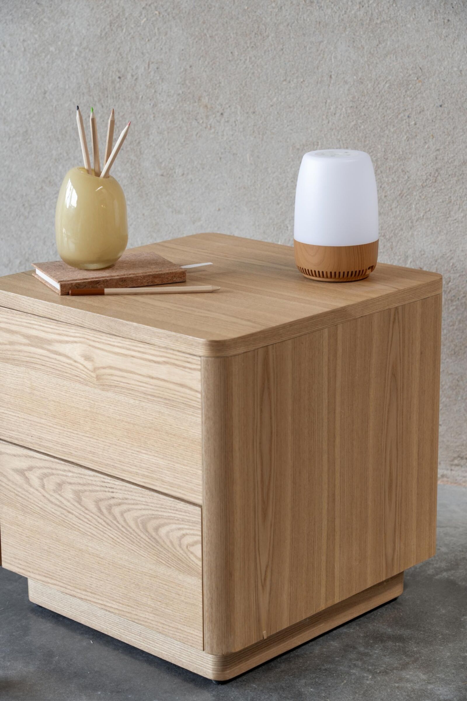 Gracias a su acabado en fresno natural, esta cómoda de noche combina perfectamente con las habitaciones Yume y Hai No Ki, manteniendo una estética coherente y elegante en el espacio infantil. Colocada junto a la cama, ofrece un almacenamiento cómodo para tener siempre a mano los objetos más importantes, como un peluche, un libro de cuentos o pequeños accesorios.